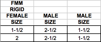 FMM/MMM- Made from hardcoated extruded 6061-T6 lightweight aircraft aluminum alloy. Female connection with both 2-1/2" and 1-1/2" size male threads.